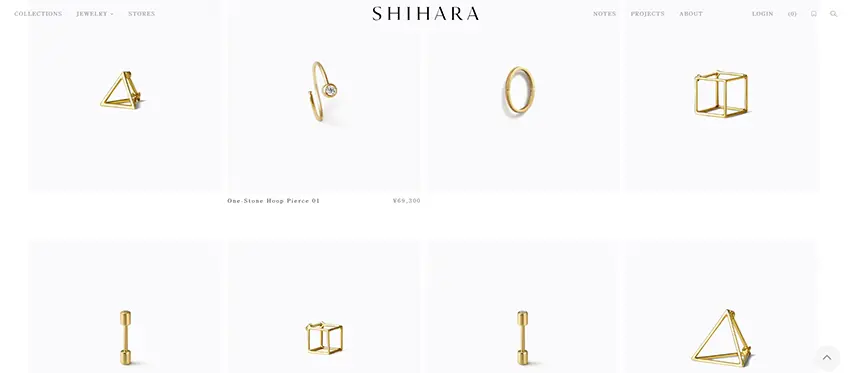 ナビゲーションは上部に「COLLECTIONS」「ABOUT」「STORES」「NEWS」「CONTACT」が配置され、余白を大きく取った構成。スクロールに合わせて現れる写真は、背景を極限まで排除し、ジュエリーの形状と光の反射だけを際立たせる。ページ遷移は滑らかで、クリックのたびに空気が変わるような静けさ。UI全体が“構造美”を体現しており、視覚的なノイズを徹底的に排除している。